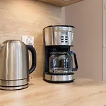 Apartamento dispõe de quartos com varanda, sofá e máquinas de café/chá, bem como cozinha totalmente equipada. A propriedade também tem 1 casas de banho. Este apartamento convida os hóspedes a 1 quartos. Para o seu conforto, vai encontrar chuveiro de abrir e casa de banho à parte.